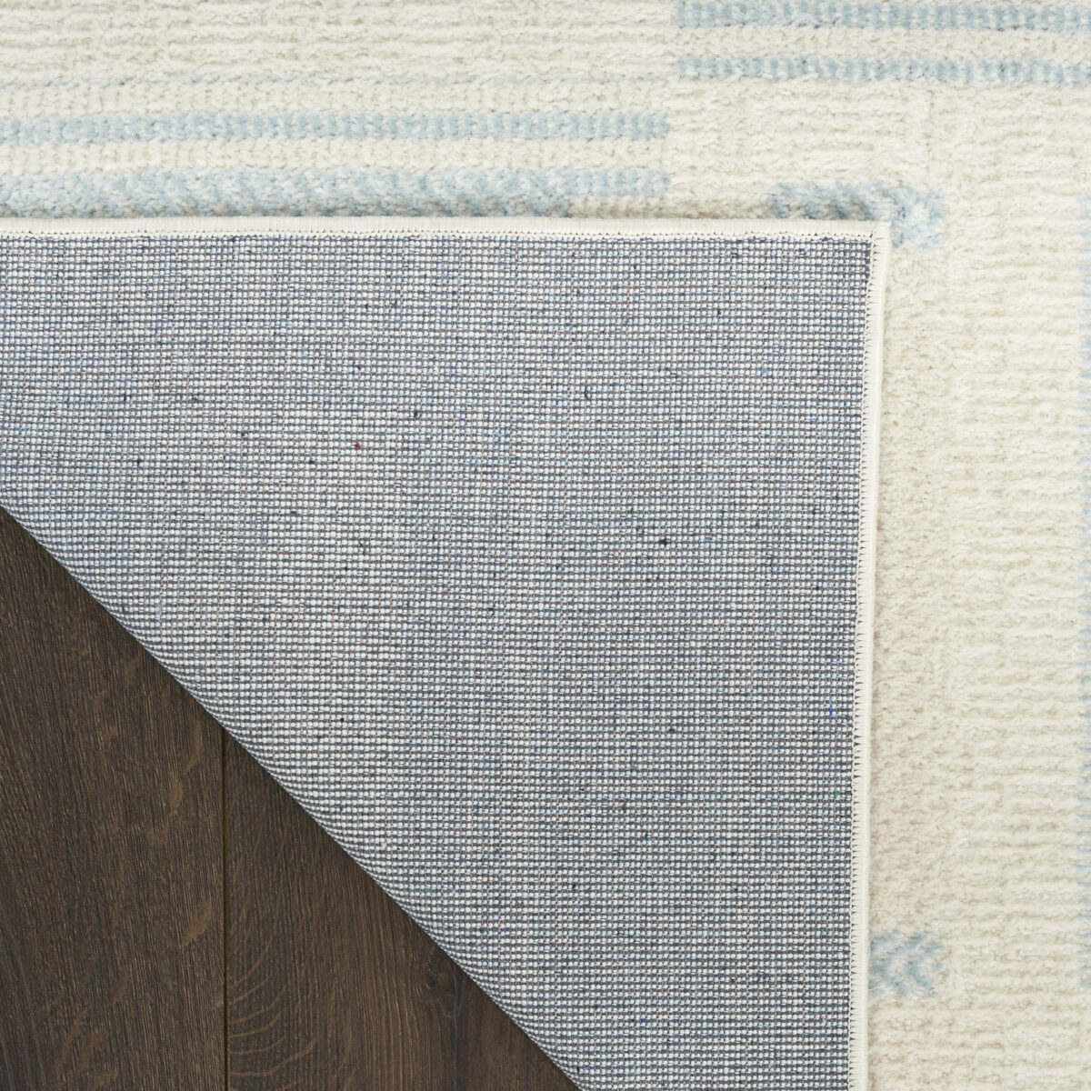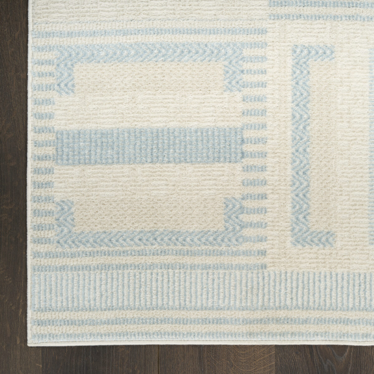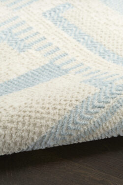 Elevate your living space with this blue and ivory geometric rug from the Nordic collection. Showcasing a clean, minimalist pattern, this modern rug infuses a unique touch of elegance into any room. The subtle sheen and high-low dimensional pile create a visually dynamic texture designed to wow friends and family. Expertly crafted in a low-profile construction that’s easy to clean perfect for busy households with pets and young kids.