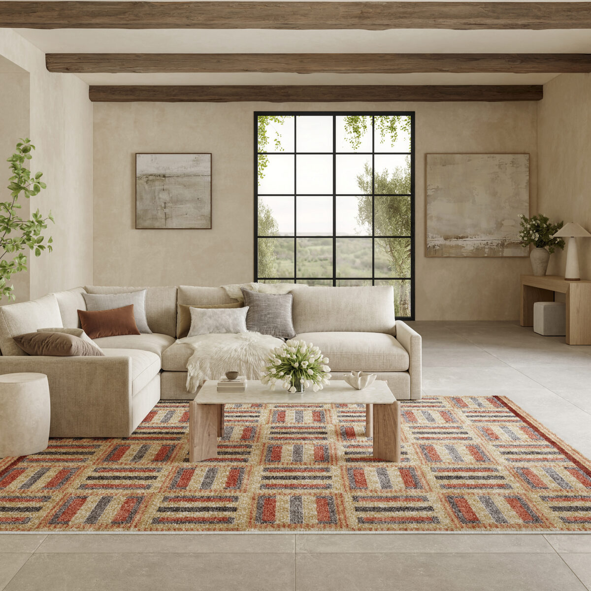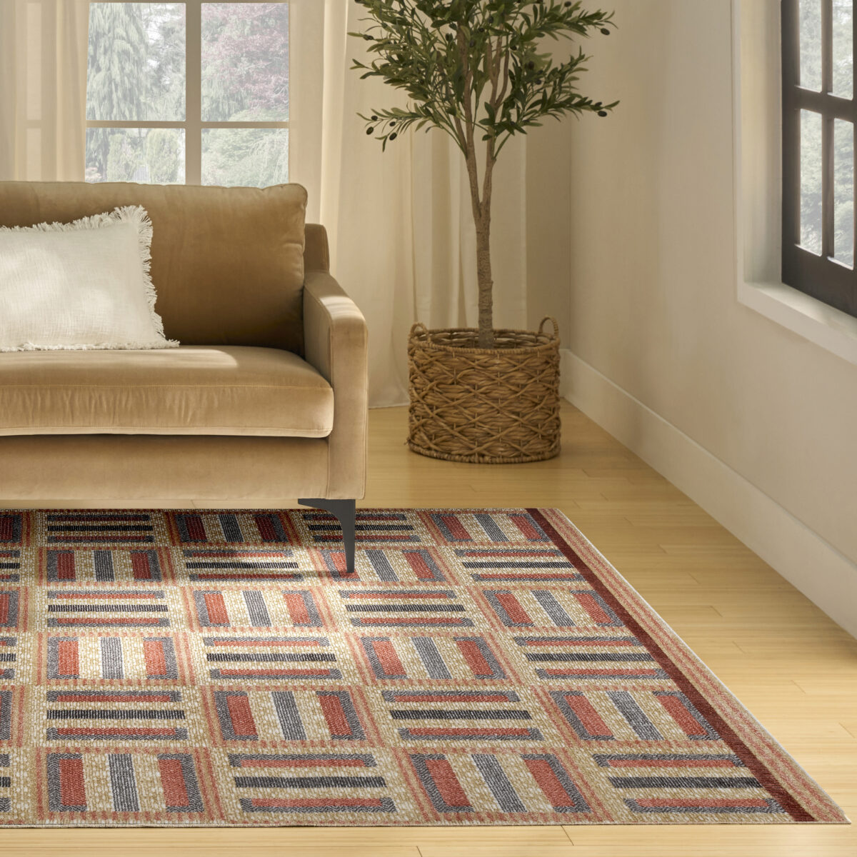Elevate your living space with this multi-coloured geometric rug from the Nordic collection. Showcasing a clean, minimalist pattern, this modern rug infuses a unique touch of elegance into any room. The subtle sheen and high-low dimensional pile create a visually dynamic texture designed to wow friends and family. Expertly crafted in a low-profile construction that’s easy to clean perfect for busy households with pets and young kids.