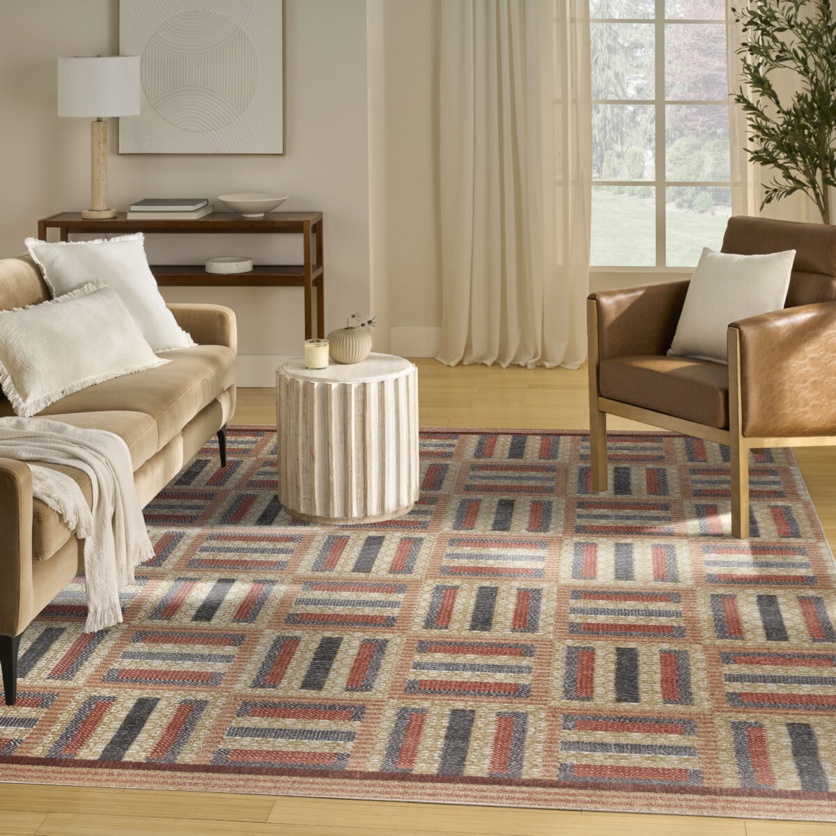 Elevate your living space with this multi-coloured geometric rug from the Nordic collection. Showcasing a clean, minimalist pattern, this modern rug infuses a unique touch of elegance into any room. The subtle sheen and high-low dimensional pile create a visually dynamic texture designed to wow friends and family. Expertly crafted in a low-profile construction that’s easy to clean perfect for busy households with pets and young kids.
