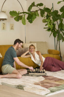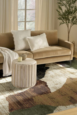 Make a bold statement with this beige, green, and burgundy multi-coloured abstract rug from the Nordic Collection. The sharp overlapping pattern and tonal, dry brush style overlay adds an artistic look perfect for a living room or dining room. This contemporary rug is made with a low-profile construction that’s easy to clean.