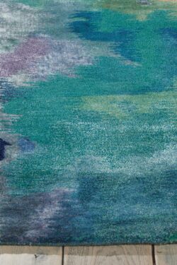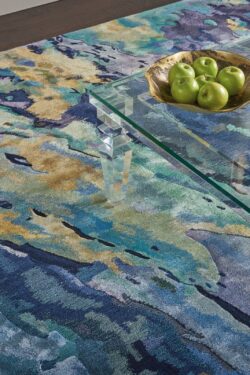 Serene water lilies float downstream to create an air of wonder and whimsy. Featuring soft shades of aqua, ivory, cloud and grey, this superbly textured, hand-tufted Prismatic area rug from Nourison is woven with lightly sparkling threads to turn dreams into reality.