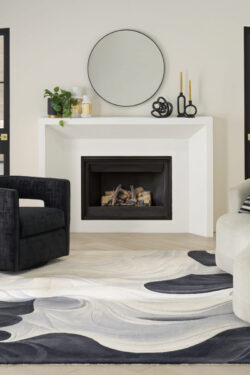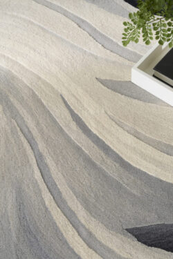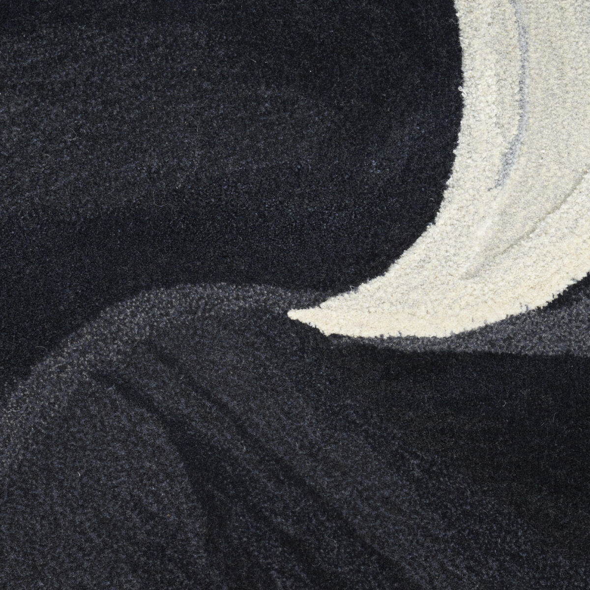 Bring any room to the forefront of avant-garde style with this abstract rug from the Prismatic collection. Swirling black, grey, and ivory tones create a deeply entrancing centrepiece, made even more stunning by a dimensional hand-carved finish. Handmade from a blend of New Zealand wool and silk-like Luxcelle fibers that beautifully capture changes in light.