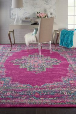 Rich, seductive colour draws you into the plush beauty of the Passion Collection. These fantastic florals and dramatic geometric designs meld elements of classic Persian motifs with a bohemian sensibility. Woven of polypropylene fibers on state-of-the-art power looms, this collection of area rugs combines thick, comfortable pile with an easy-care approach. Advanced overdye techniques create an exciting patina effect in shades of pink, blue, and orange. Live a more colourful life with Passion in your home!