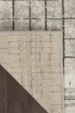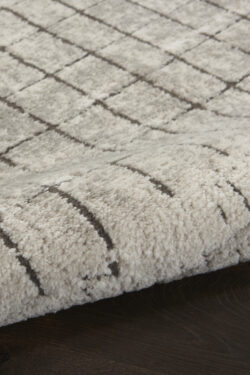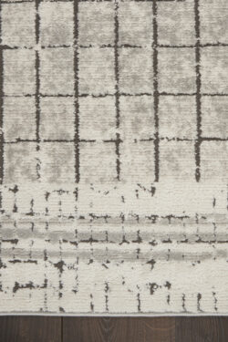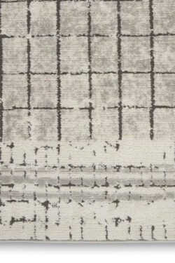 A subtle grid creates a linear motif in this modern abstract area rug from the Quarry Collection. Its contemporary allure is finished with a side borders, an intriguingly distressed surface and a thick, luscious pile with cut texture. Power-loomed in soft ivory, quartz grey, and taupe detailing with surged edge for modern simplicity.
