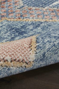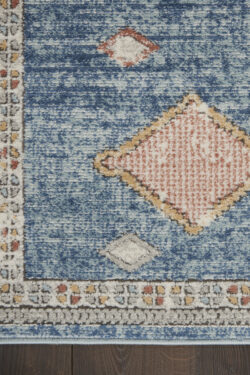 A bold trio of diamonds centres this exciting, Moroccan-inspired area rug from the Quarry Collection. Elegant and versatile in a stunning mineral palette of lapis blue with details in orange, gold and ivory, this power-loomed rug delivers texture and comfort with its thick cut-pile and soft, easy to clean blend of polyester and polypropylene. A vintage fade, ornamental border and surged edge complement boho, contemporary, and modern styles of decor.
