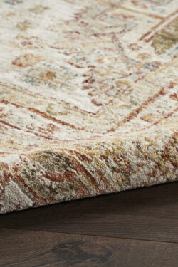 With its ornate design in ivory with neutral details and distressed finish, this vintage rug from the Sahar Collection adds a layer of traditional style and soft comfort to your space. Place this Persian rug in your living room, dining room, bedroom, or hallway for a warm and welcoming accent. Machine-made from polyester fibers that are easy to clean and maintain.