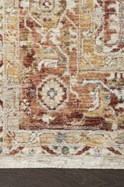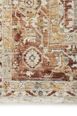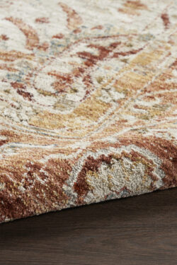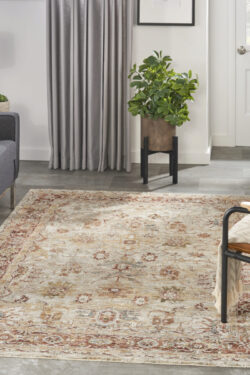 Bring traditional style to your space with this Persian rug from the Sahar Collection. It features a detailed medallion pattern on an ivory ground, framed by a classic border and distressed finish that adds vintage flair. Machine-made from durable, easy-clean polyester fibers that will easily enhance your living room, dining room, bedroom, kitchen, or hallway.