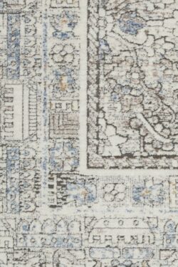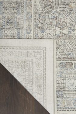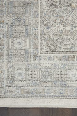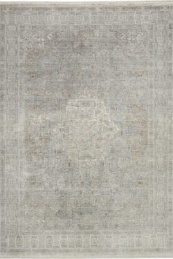 Elaborate design on a traditional, framed pattern with faded patina for a vintage look. Cream and faded grey threads blend seamlessly on this versatile, Persian style area rug. Silky to the touch and pleasing to the eye, in a soft, inviting pile. Treated with Nouri-Guard™ fiber protectant for lasting, stain-resistant beauty.