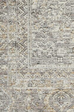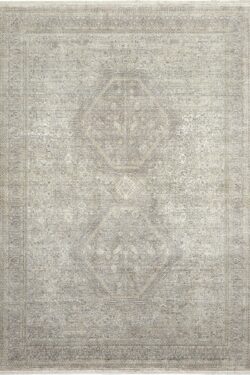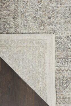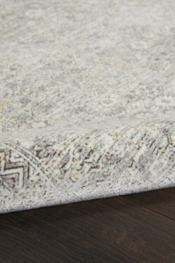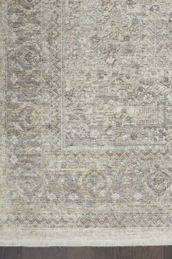 Elaborate design with narrow ornamental border and centre medallions on a traditional pattern with faded patina for a vintage look. Cream and faded grey threads blend seamlessly on this versatile, Persian style area rug. Silky to the touch and pleasing to the eye, in a soft, inviting pile. Treated with Nouri-Guard™ fiber protectant for lasting, stain-resistant beauty.