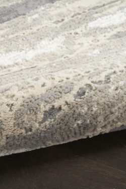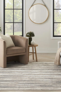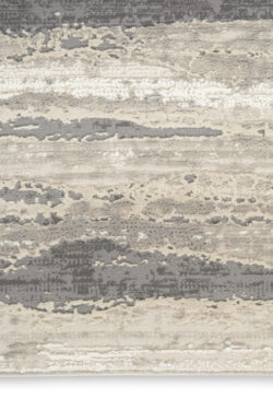 Invite movement and depth to your space with this abstract rug from the Sustainable Trends Collection. The irregular stripe pattern is presented in beige, ivory, and grey tones that are delicately layered to create a sense of dimension. Sustainably crafted from recycled polyester fibers for a stylish, eco-friendly way to decorate your living room, hallway, bedroom, or kitchen.