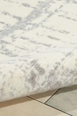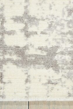 Stunning striations in scintillating ivory and abalone create a focal piece rug in superb modern neutrals. Visually engaging yet subtle, and imbued with a gentle luminosity, this masterwork textile brings design sophistication to the contemporary or eclectic room.