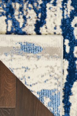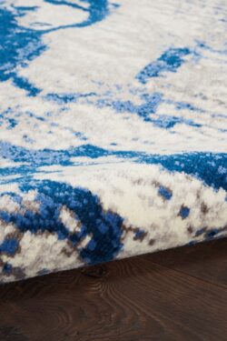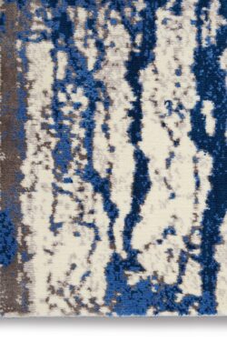 With torrents of abstract blue and grey on a sleek ivory field, this Twilight Collection rug makes a distinctive painterly statement in any modern home décor. The low-cut pile features luxurious texture with wool and Luxcelle™ fibers that create a tempting silky surface, with a hint of glistening accents for extra energy and life. This rug brings a modern abstract allure as the perfect foundation for any contemporary décor.