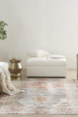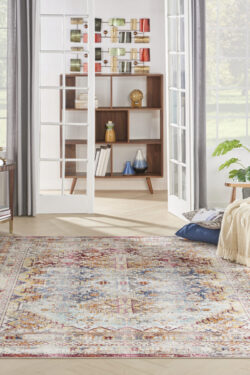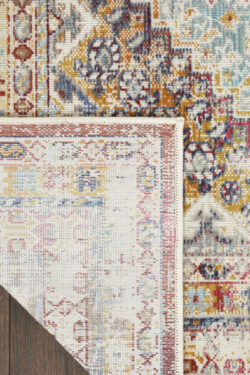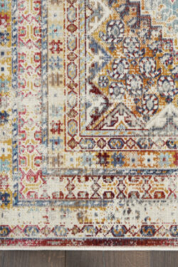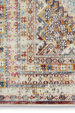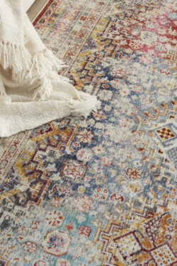 Positively brimming with character, this Vintage Kashan Collection area rug is a brilliant complement to bohemian, farmhouse, and contemporary decor. Traditional Persian patterns are rendered in brilliant multicolor tones of blue, orange, burgundy, and yellow that are purposefully distressed for the look of a treasured antique. This exquisitely crafted transitional rug is machine made of polypropylene fibers for easy cleaning, making it a great choice for busy households with pets and kids.