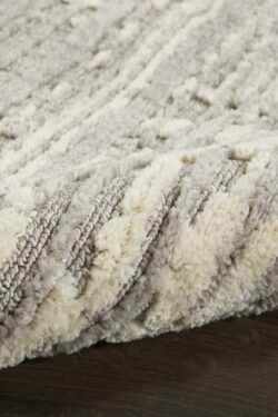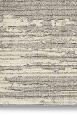 Modern sophistication meets classic comfort in the urbane Zermatt Collection. These superbly made area rugs combine low loop and high-plush pile to create a beautifully dimensional texture that brings depth to the captivating abstract designs. Striations and a luminous neutral colour field create a painterly effect that simulates the hand of an artist. A borderless design and surged edges give it a clean, modern look. Make an instant style statement in your home with the unmistakable chic of a Zermatt area rug.