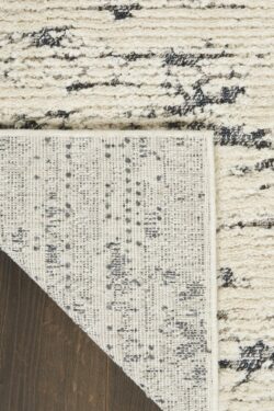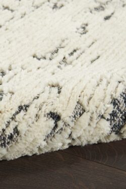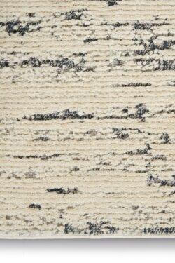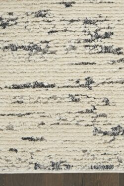 Enjoy the easy comfort of a minimalist look in this elegant and sophisticated Zermatt area rug. Its abstract design is beautifully enhanced by the dimensional, high-low pile combining low-loop and high-plush textures. Inky blue colour fields accent the striated ivory ground for a versatile colour scheme at home in the contemporary room.